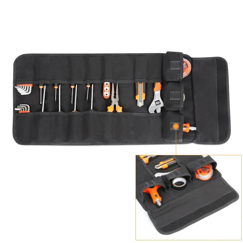 Dieses multifunktionale Werkzeugroll wurde speziell für Handwerker, Elektriker, Schreiner und Heimwerker entwickelt, die häufig Werkzeuge transportieren müssen. Hergestellt aus 12 oz Segeltuch, bietet es Platz für verschiedene Werkzeuge und sorgt für Ordnung und einfachen Transport.